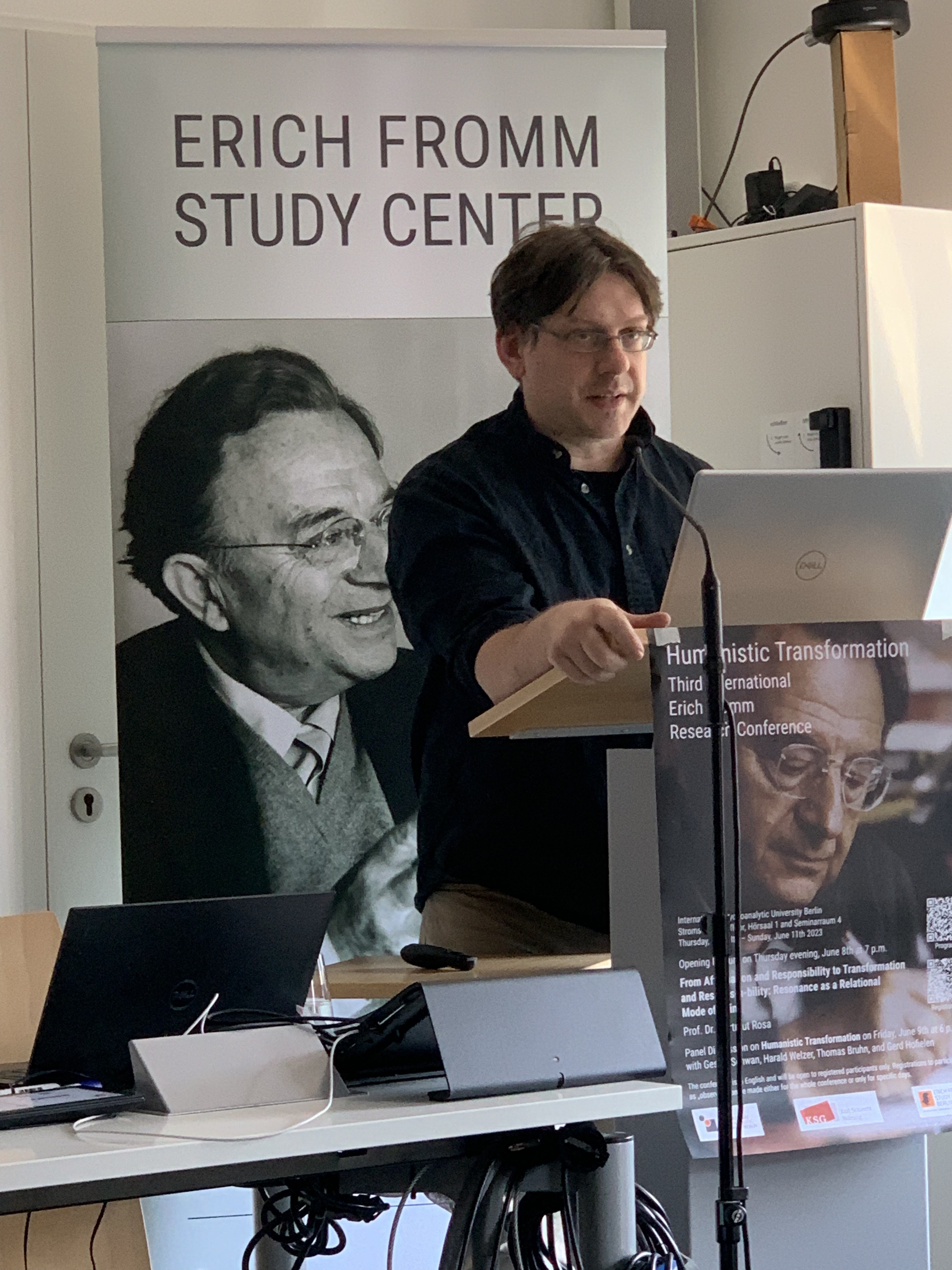 From June 8th through the 11th, I participated in the 3rd annual Erich Fromm Conference, which took place at the International Psychoanalytic University in Berlin, Germany, in the Erich Fromm Study Center, organized by Reiner Funk (seen in the picture above). Our theme this year was on the need for “Humanistic Transformation” of self and society. I presented my work on Saturday, June 10th, regarding Erich Fromm’s dialectical approach to religion, wherein he determinately negates the exterior of Judaism, Christianity, and Buddhism, while rescuing its inner-truths psychoanalytically. My session was well attended and I received some interesting questions from the audience. It is clear that Erich Fromm’s work continues to be a source for critique of capitalist modernity, as well as the once-again rising forms of rightwing authoritarianism, which itself in many ways is a reaction to democratic, capitalist, and globalized modernity. Erich Fromm’s one time assistant, Reiner Funk, presided over the conference, with the help of Thomas Kühn, Hannah Wippermann, Katrin Voigt. I was happy to see some familiar friends, Jeremiah Morelock, Joan Braune, Lauren Langman, and Michael Thompson, as well as my dear brothers and members of the Institute for Critical Social Theory, Seyed Javad Miri, Michael Naughton, and Mehdi Shariati. Seyed Javad Miri gave a master class in how to present one’s work at an international conference; he dazzled the crowd with his presentation on anxiety as a means of growth. Below are some of the pictures from the conference.