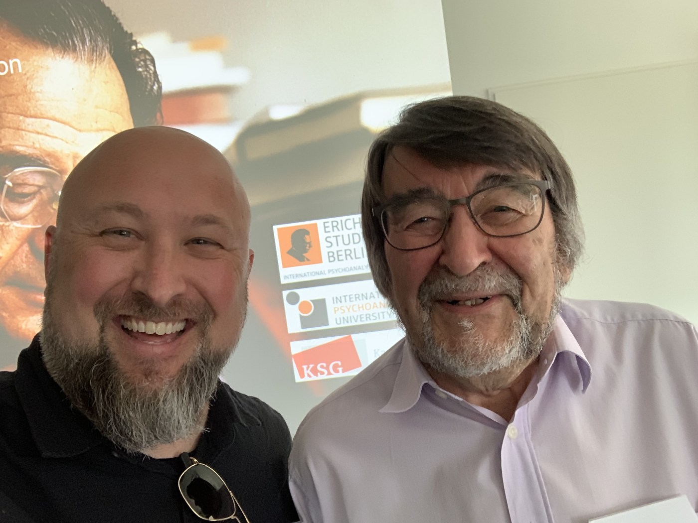 From June 8th through the 11th, I participated in the 3rd annual Erich Fromm Conference, which took place at the International Psychoanalytic University in Berlin, Germany, in the Erich Fromm Study Center, organized by Reiner Funk (seen in the picture above). Our theme this year was on the need for “Humanistic Transformation” of self and society. I presented my work on Saturday, June 10th, regarding Erich Fromm’s dialectical approach to religion, wherein he determinately negates the exterior of Judaism, Christianity, and Buddhism, while rescuing its inner-truths psychoanalytically. My session was well attended and I received some interesting questions from the audience. It is clear that Erich Fromm’s work continues to be a source for critique of capitalist modernity, as well as the once-again rising forms of rightwing authoritarianism, which itself in many ways is a reaction to democratic, capitalist, and globalized modernity. Erich Fromm’s one time assistant, Reiner Funk, presided over the conference, with the help of Thomas Kühn, Hannah Wippermann, Katrin Voigt. I was happy to see some familiar friends, Jeremiah Morelock, Joan Braune, Lauren Langman, and Michael Thompson, as well as my dear brothers and members of the Institute for Critical Social Theory, Seyed Javad Miri, Michael Naughton, and Mehdi Shariati. Seyed Javad Miri gave a master class in how to present one’s work at an international conference; he dazzled the crowd with his presentation on anxiety as a means of growth. Below are some of the pictures from the conference.